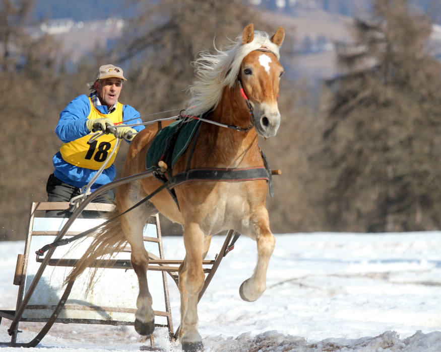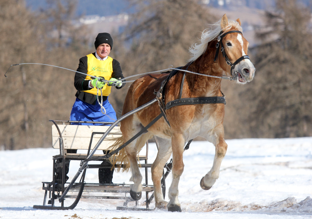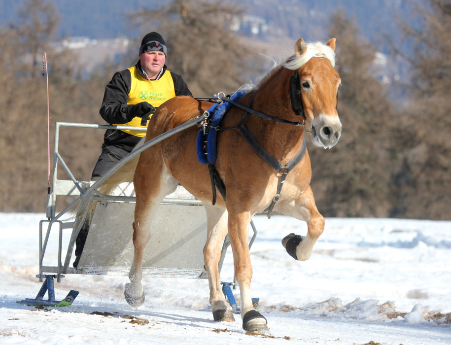 Sleigh racing: the new County Champions 43 horses had to master the 1400 m race track pulling a sleigh and staying in trot all the while. With the experienced Alois Egger in the driving seat, Alfons Kofler's Rosaria BZ26754 came in first and took home the title. Kofler's mare Alissia BZ29205 turned out to be the fastest three-year-old, while Vicky BZ28370 and driver Hubert Reiterer beat their competitors in the category of four- to five-year old mares.