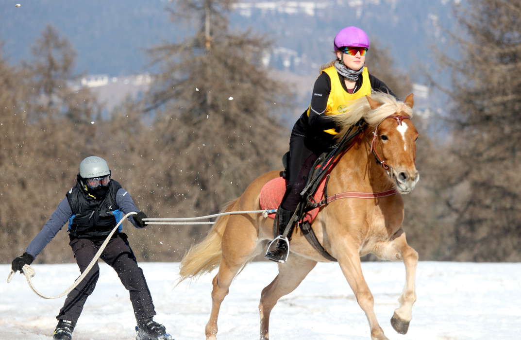 The fastest Skijor racers Skijoring on the other hand does not suffer from a lack of attention: Action-packed and always a thrill, this discipline is a hit with both contestants and the crowds. For the Skijor races, a horse and rider have to master the 700 m track in full gallop – with a skier in tow. Jakob Gross' mare Nora BZ24573 – with Jana Thaler in the saddle and Ruth Thaler on skis – was the fastest contestant in the Older Mares category. Hannes Aster's Ayla BZ29308 – with Barbara Aster in the saddle and Simon Stofner in tow – won the three-year-old mares' race.
