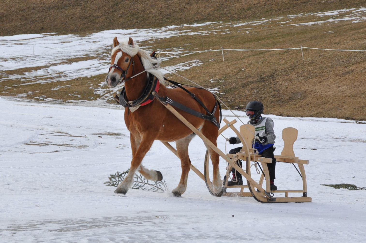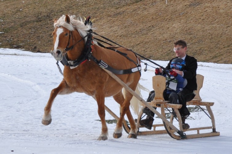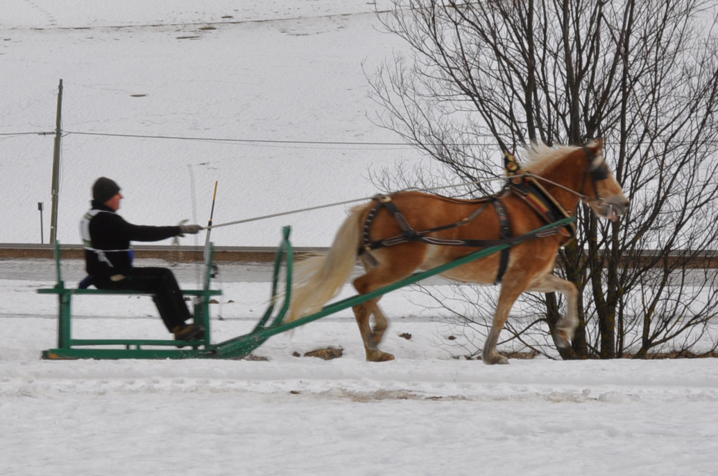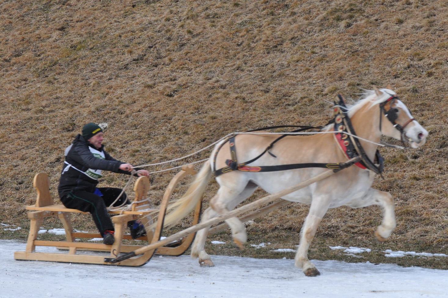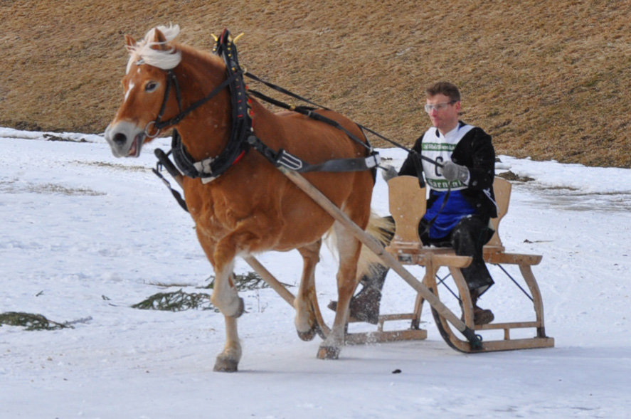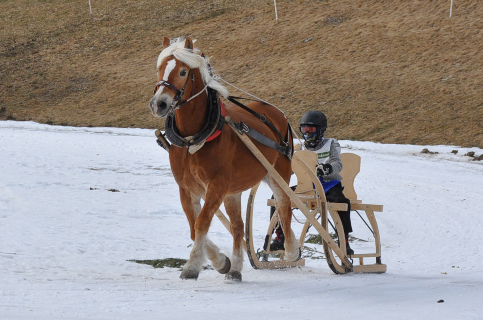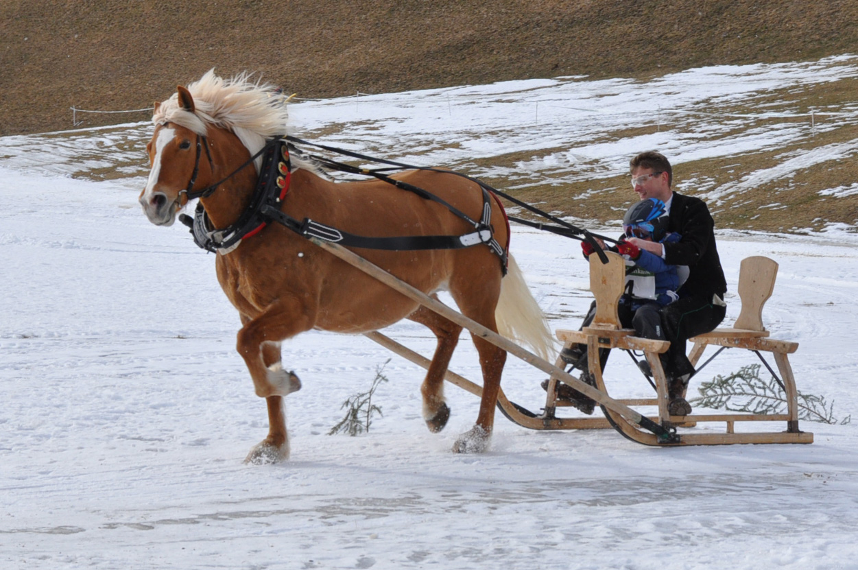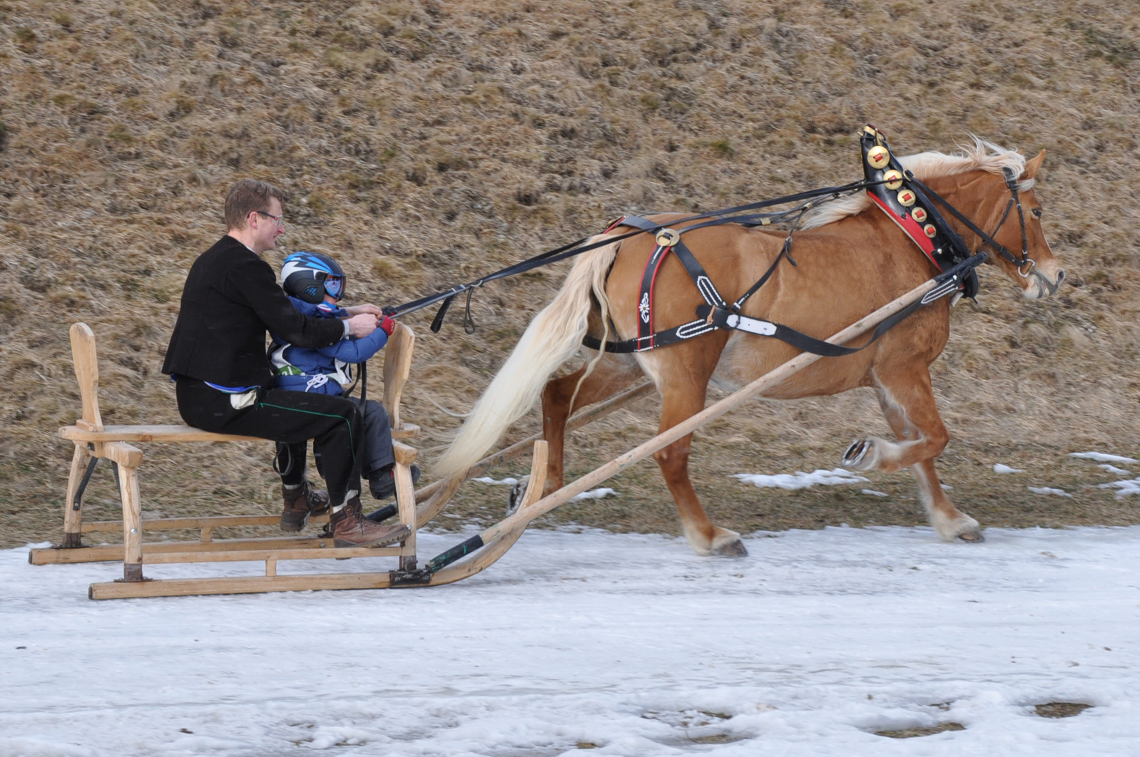 It’s that time of the year – time for the Val Sarentino/Sarntal Haflinger Breeders’ Association’s annual sleigh race and skijoring contest at the Rabensteiner inn and farmstead in Mules/Muls. And on Saturday 22 January 2022, crowds from near and far braved fierce gusts of icy wind and excitedly cheered on the Haflingers racing in a number of categories with their golden winter coats glistening in the sun.