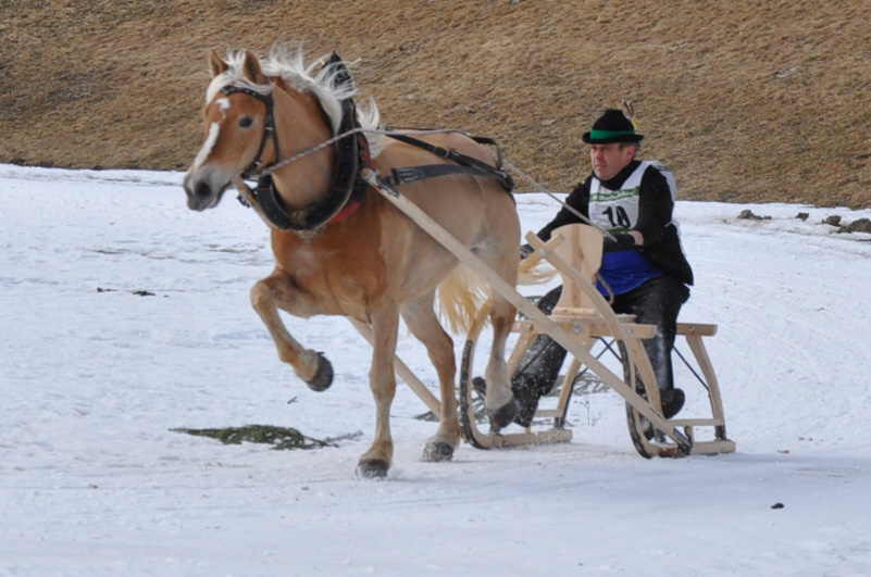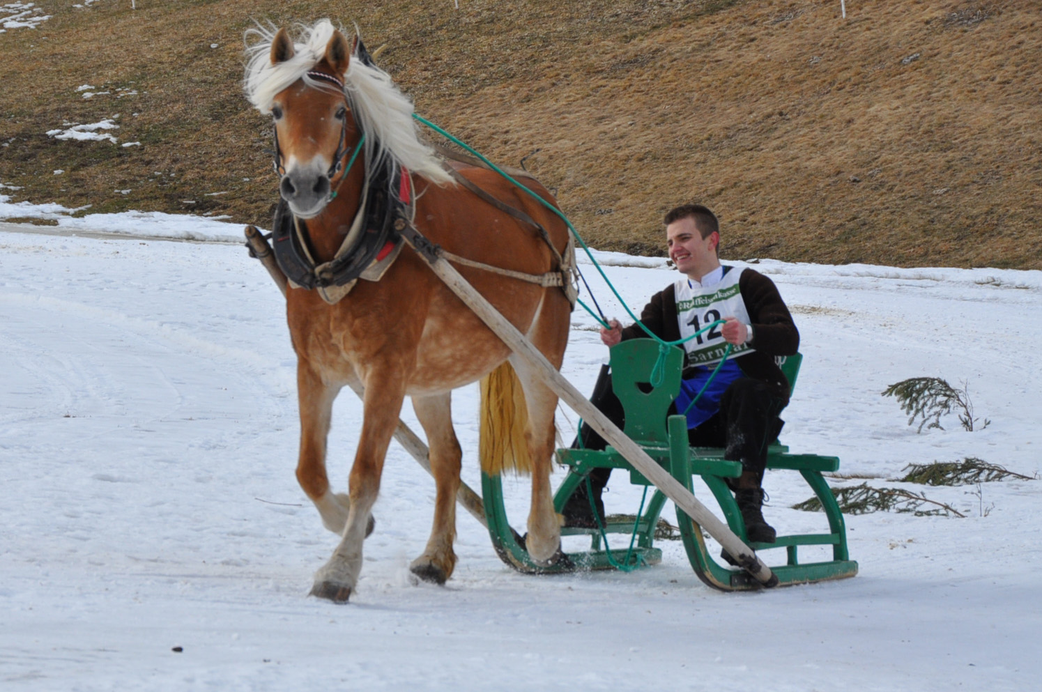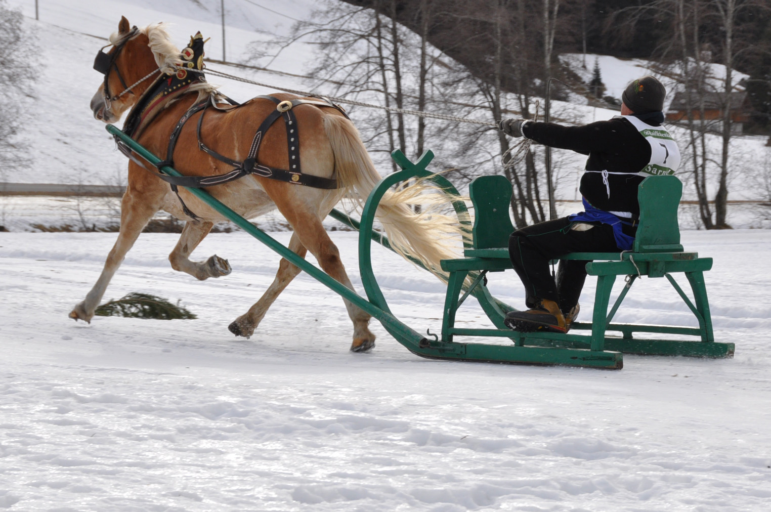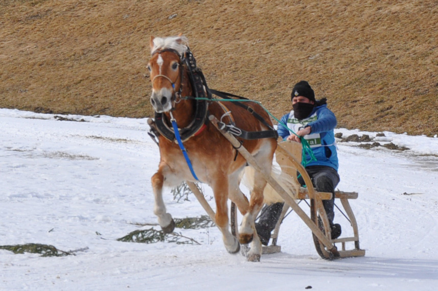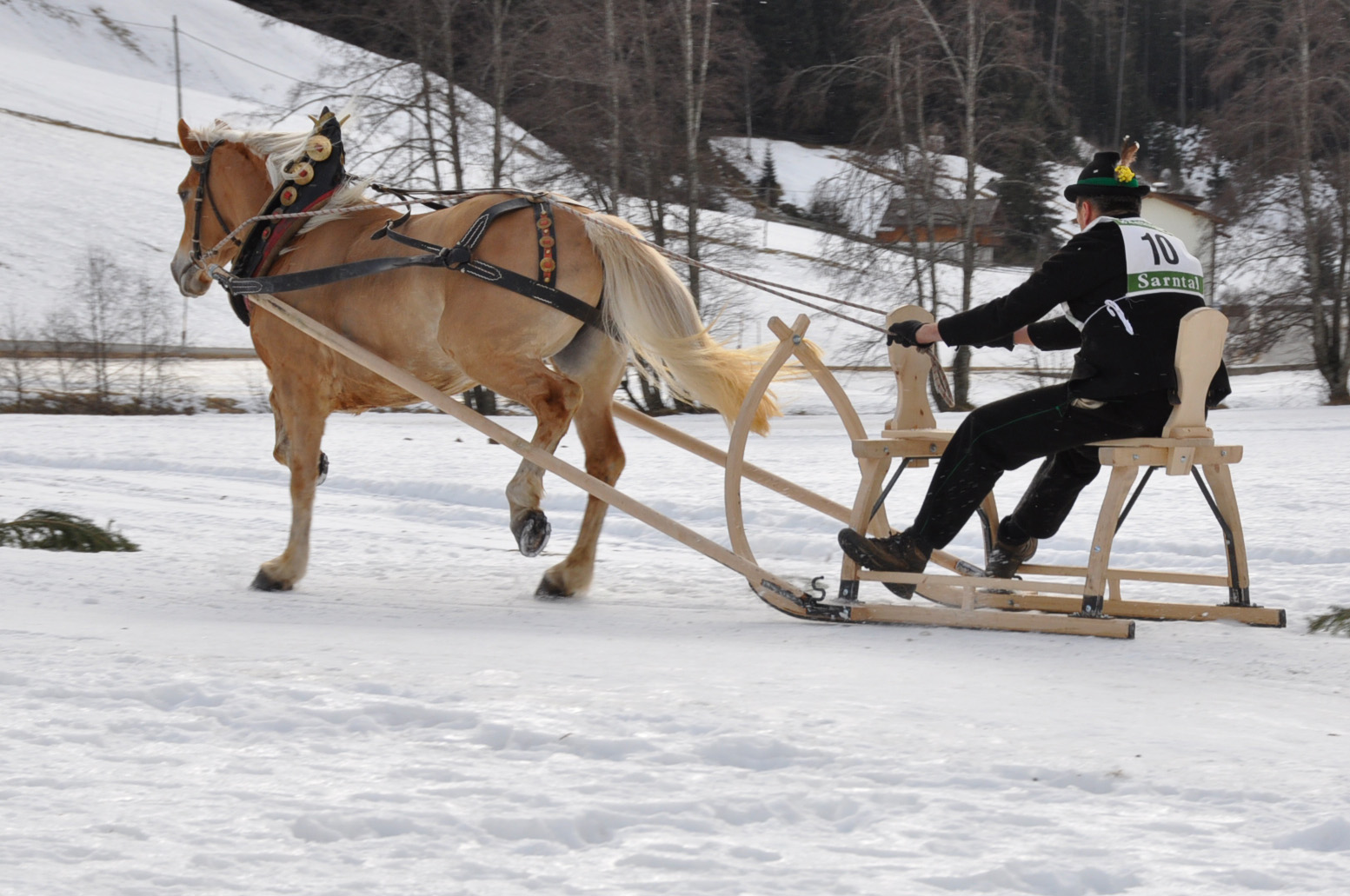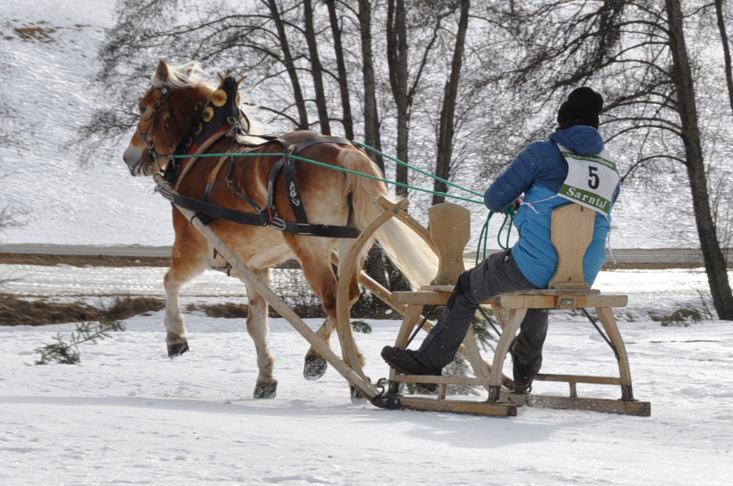 It’s that time of the year – time for the Val Sarentino/Sarntal Haflinger Breeders’ Association’s annual sleigh race and skijoring contest at the Rabensteiner inn and farmstead in Mules/Muls. And on Saturday 22 January 2022, crowds from near and far braved fierce gusts of icy wind and excitedly cheered on the Haflingers racing in a number of categories with their golden winter coats glistening in the sun.