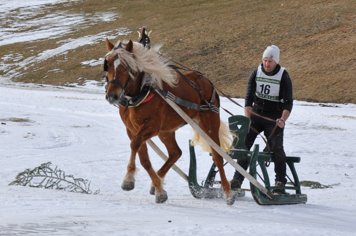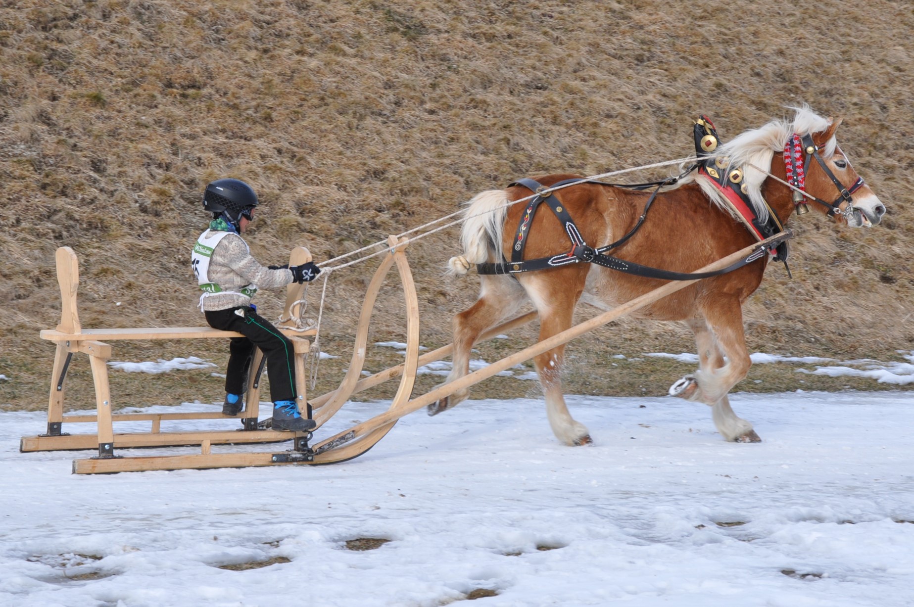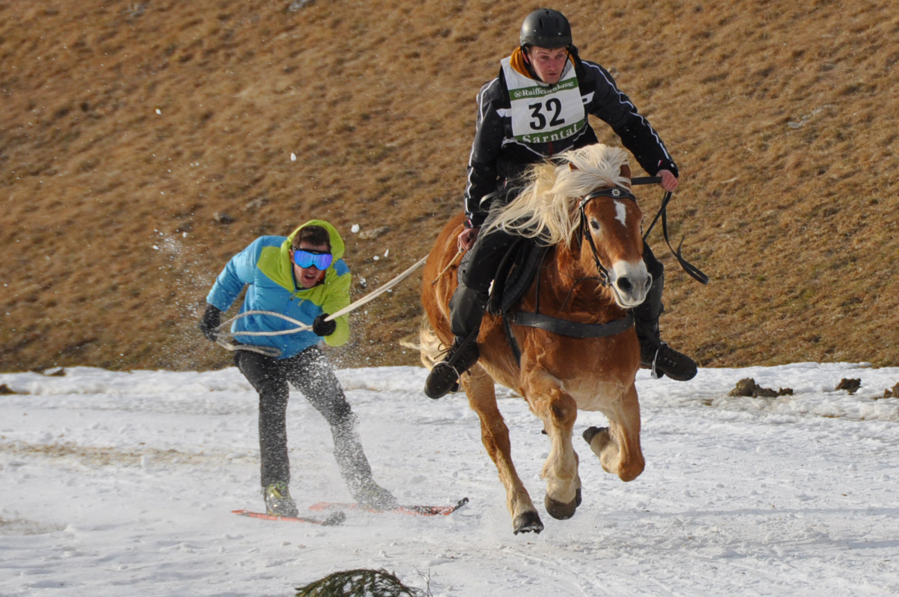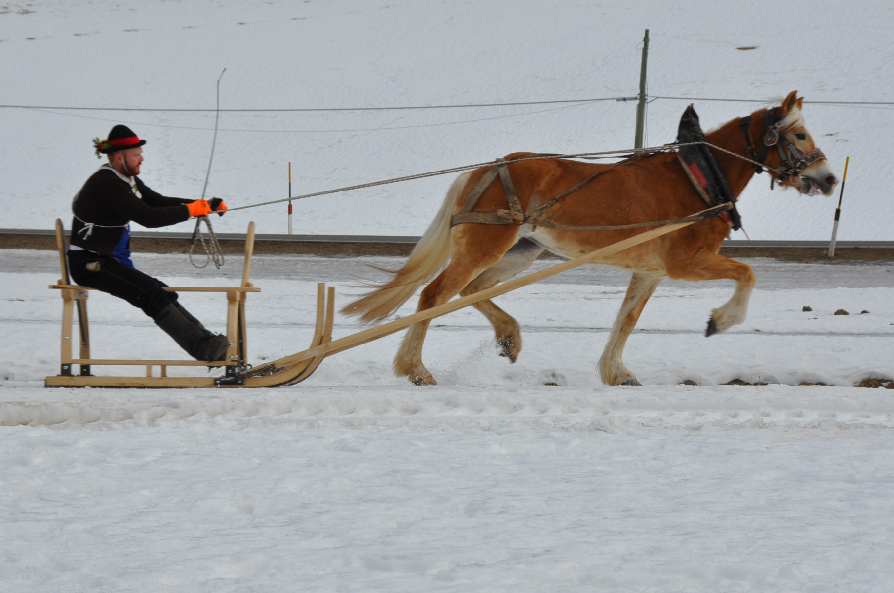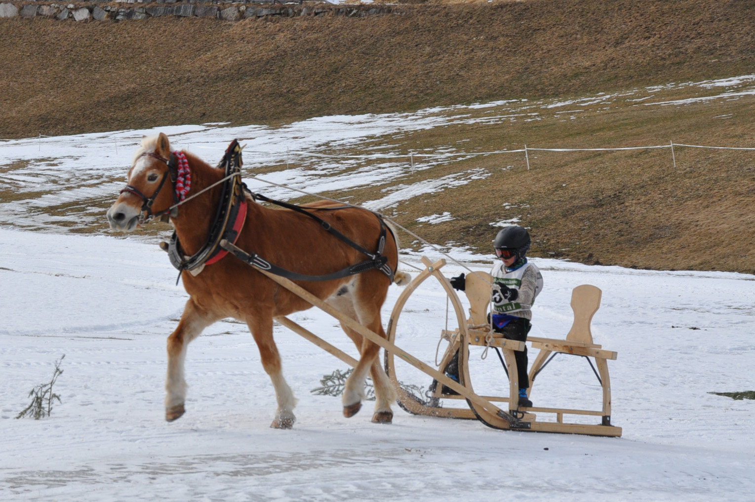 It’s that time of the year – time for the Val Sarentino/Sarntal Haflinger Breeders’ Association’s annual sleigh race and skijoring contest at the Rabensteiner inn and farmstead in Mules/Muls. And on Saturday 22 January 2022, crowds from near and far braved fierce gusts of icy wind and excitedly cheered on the Haflingers racing in a number of categories with their golden winter coats glistening in the sun.