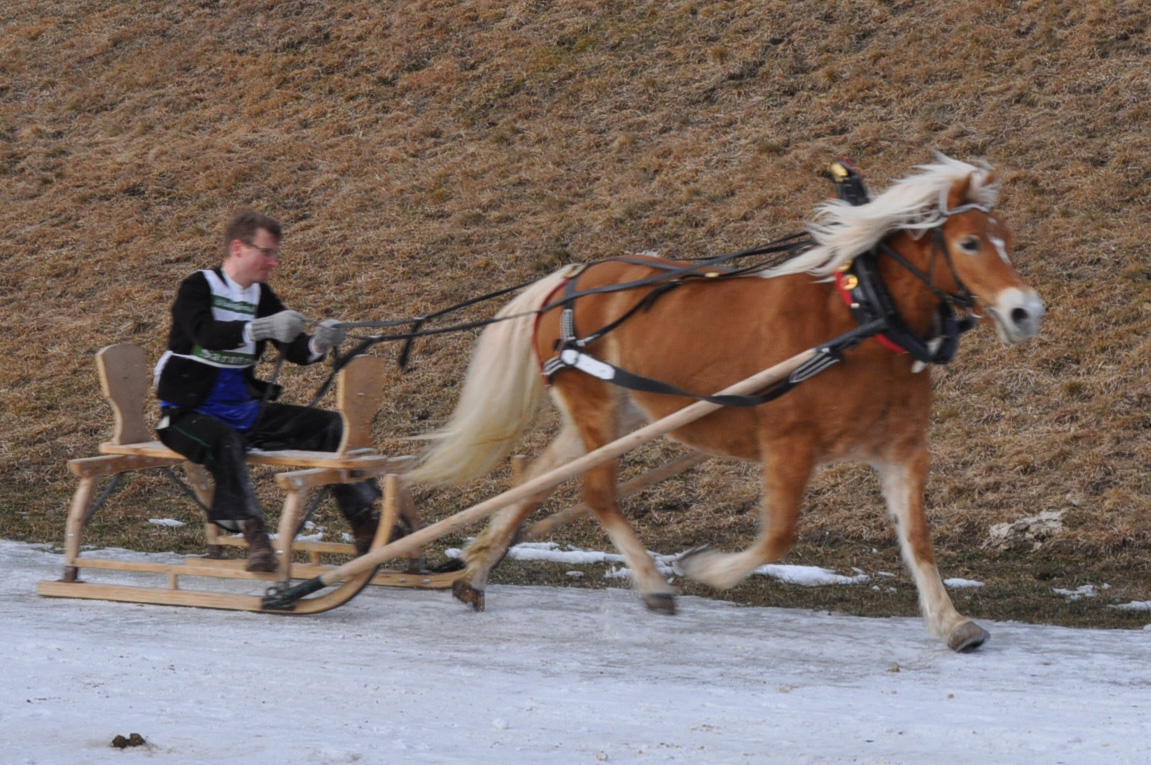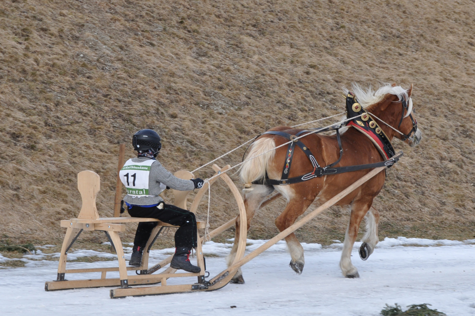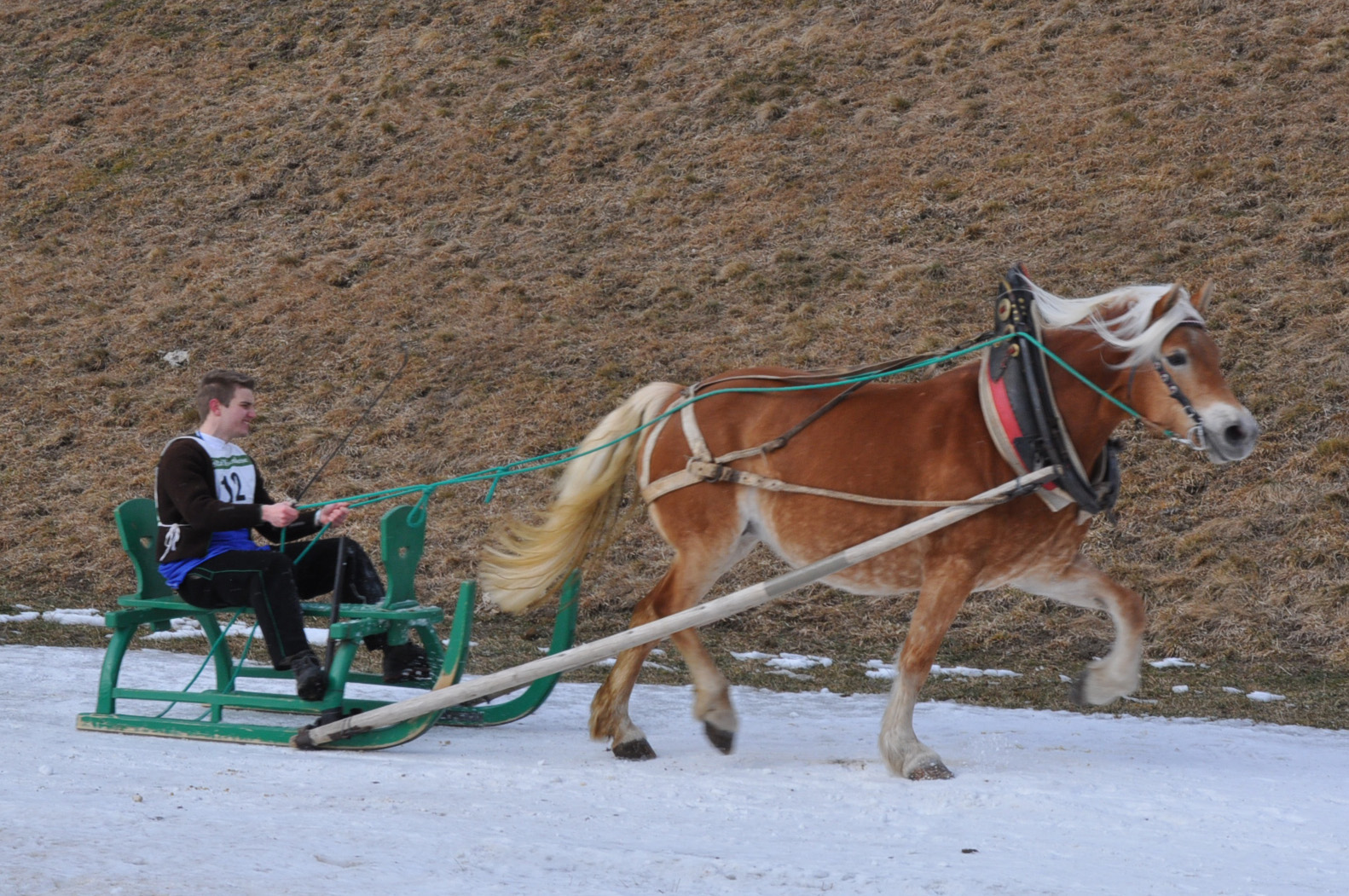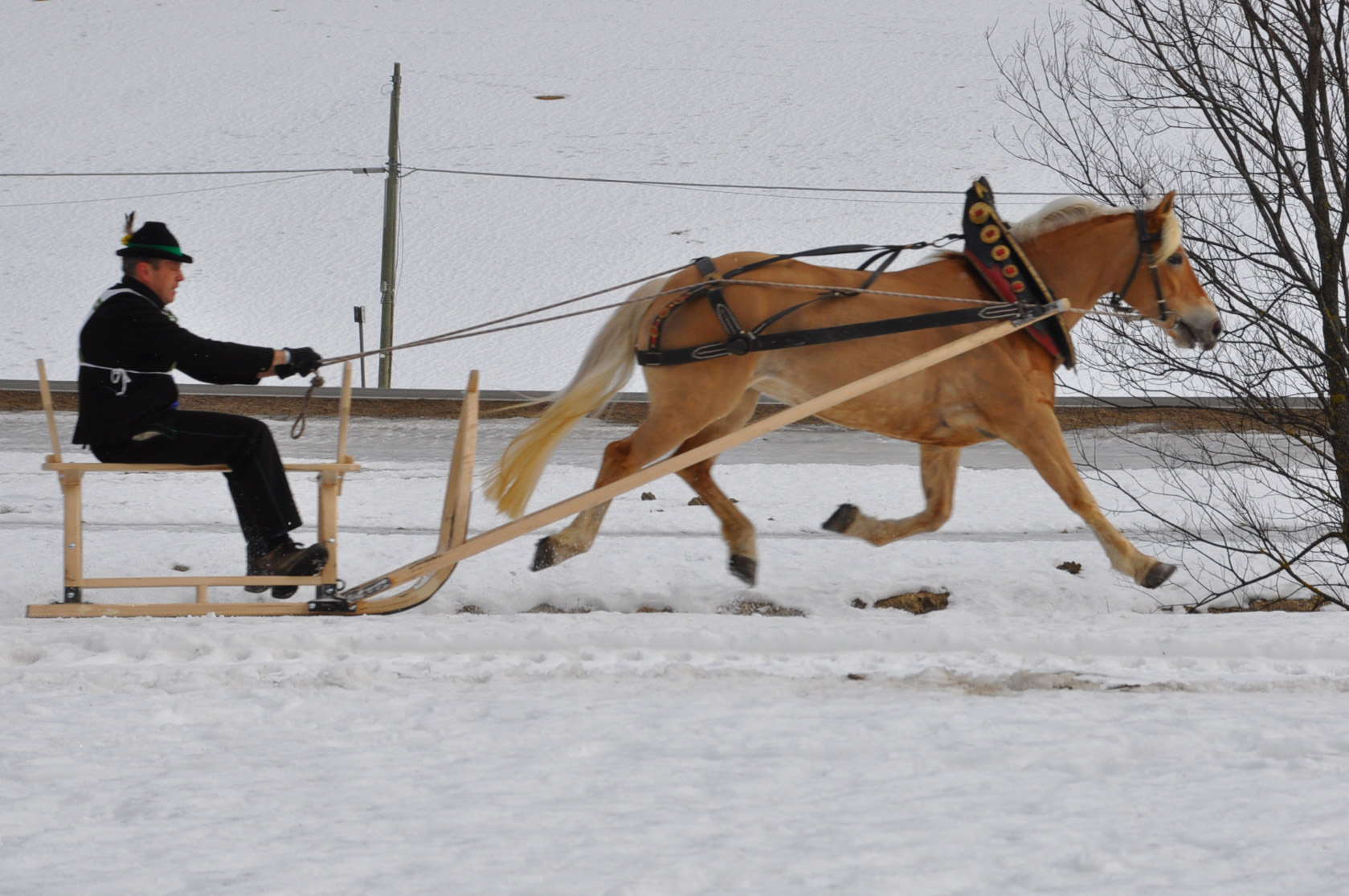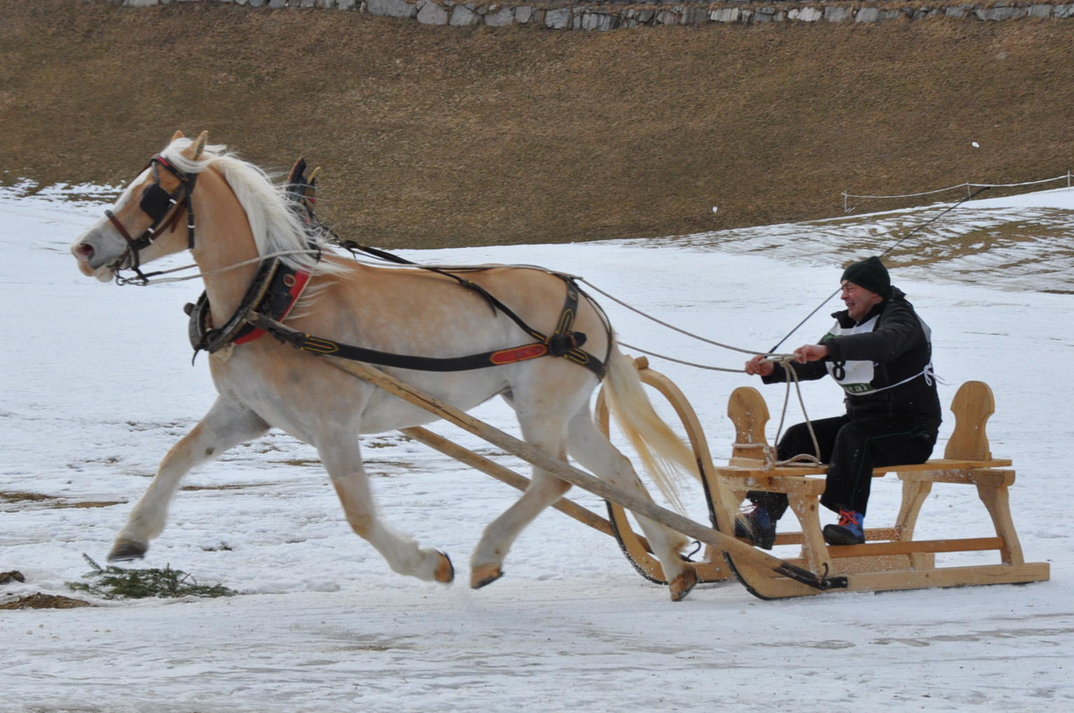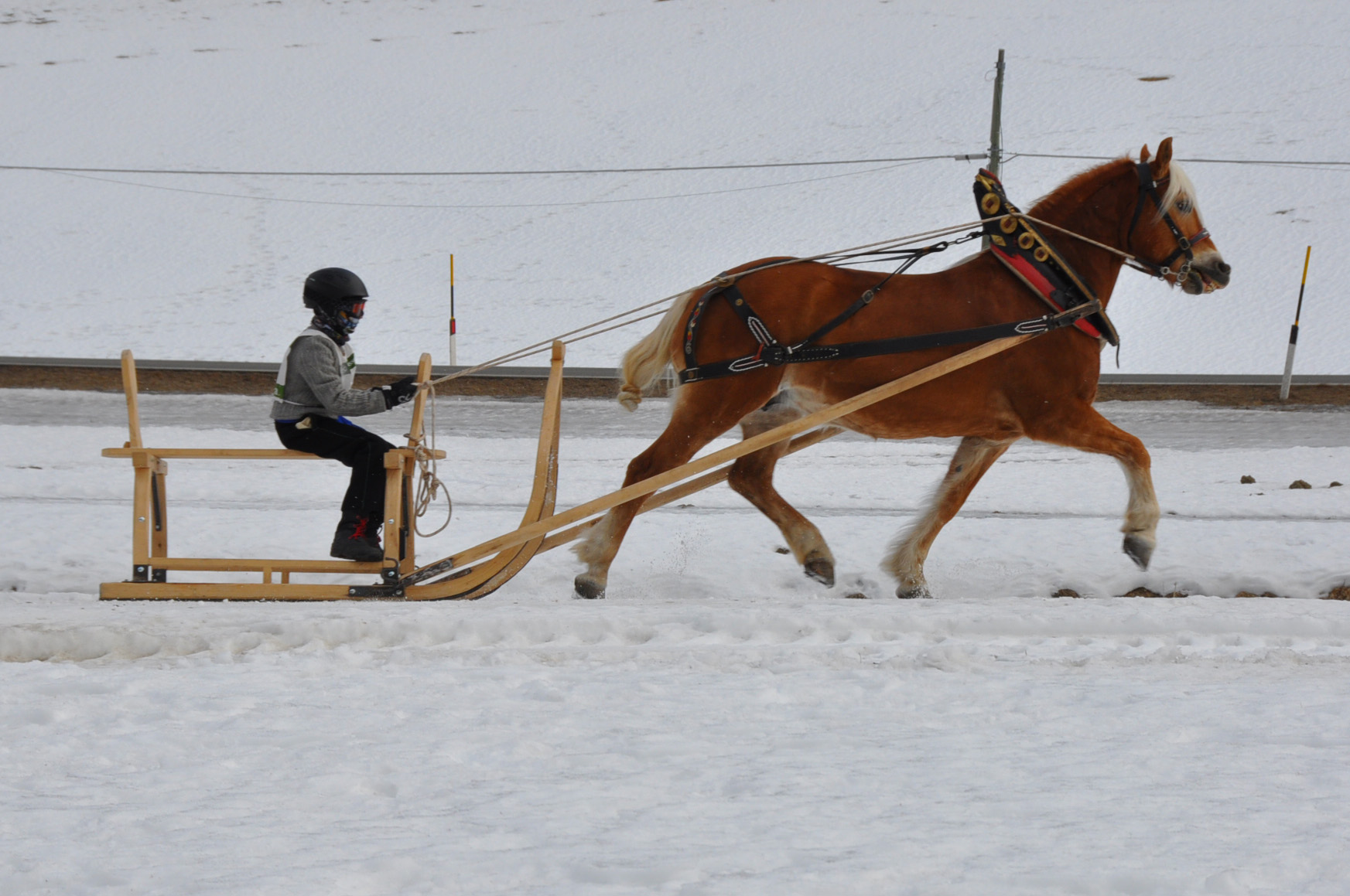 It’s that time of the year – time for the Val Sarentino/Sarntal Haflinger Breeders’ Association’s annual sleigh race and skijoring contest at the Rabensteiner inn and farmstead in Mules/Muls. And on Saturday 22 January 2022, crowds from near and far braved fierce gusts of icy wind and excitedly cheered on the Haflingers racing in a number of categories with their golden winter coats glistening in the sun.