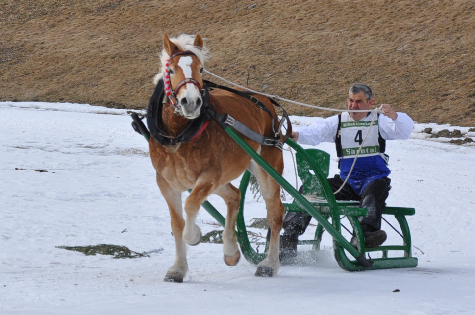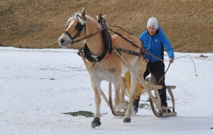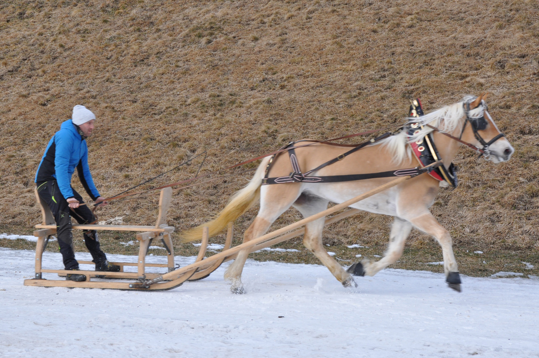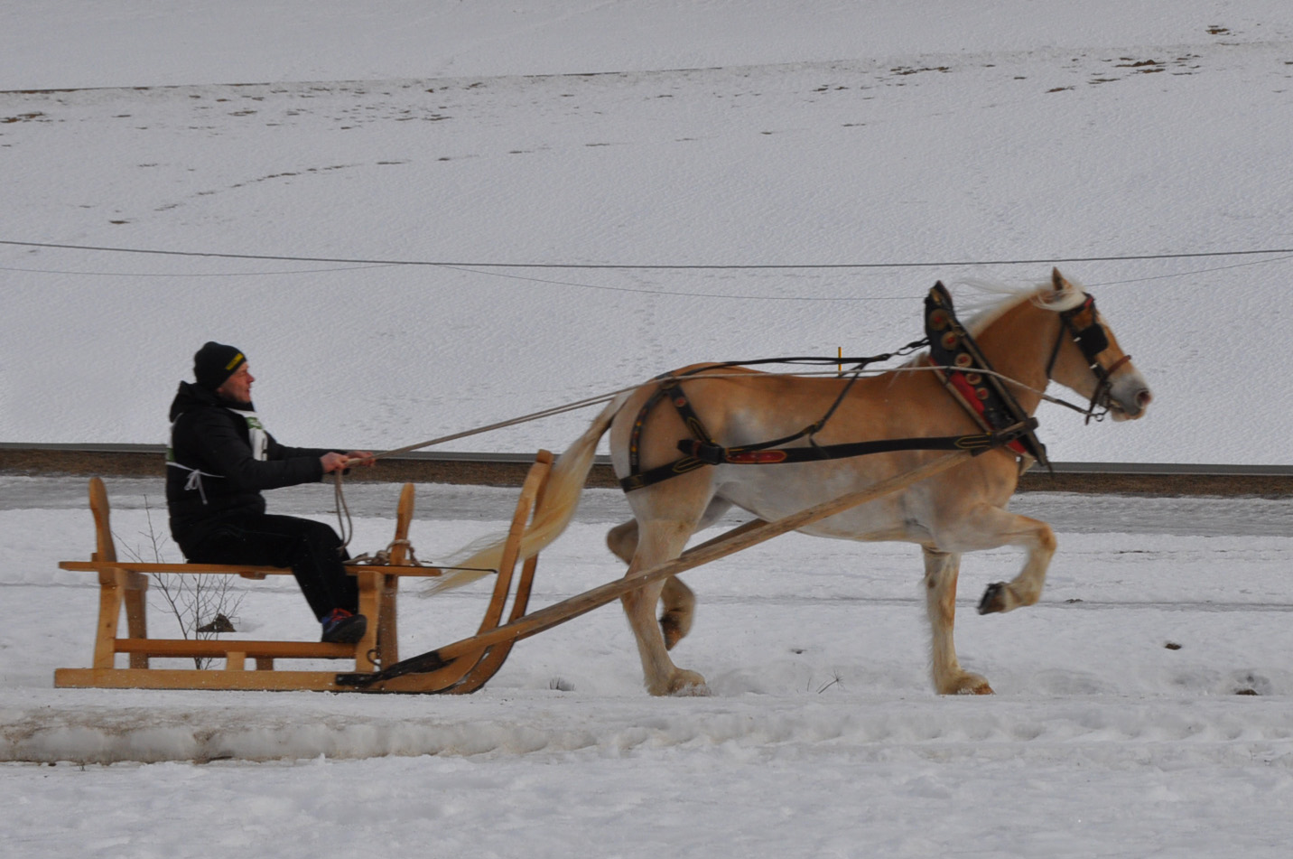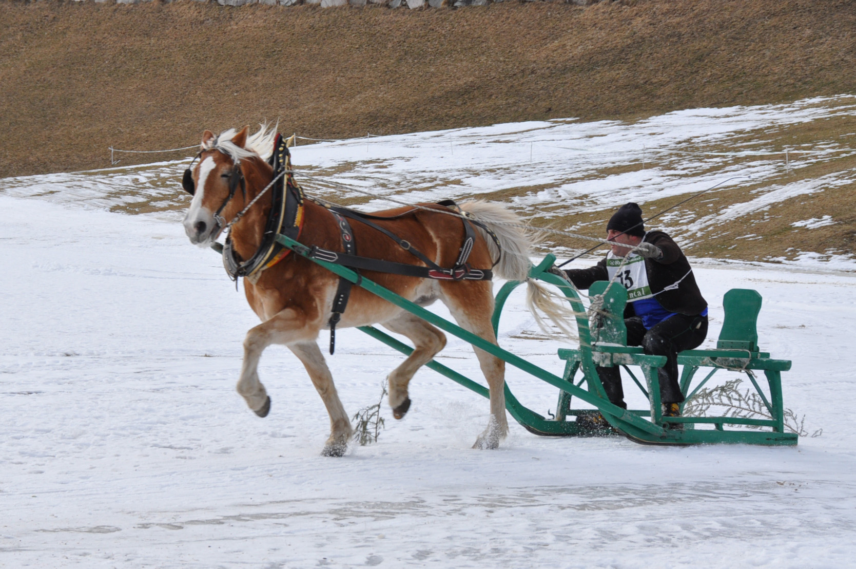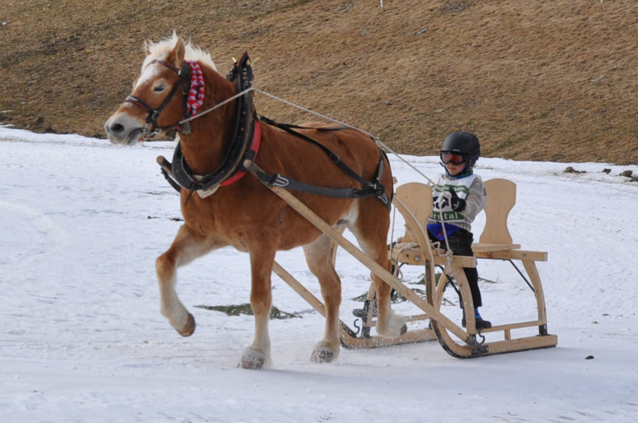 It’s that time of the year – time for the Val Sarentino/Sarntal Haflinger Breeders’ Association’s annual sleigh race and skijoring contest at the Rabensteiner inn and farmstead in Mules/Muls. And on Saturday 22 January 2022, crowds from near and far braved fierce gusts of icy wind and excitedly cheered on the Haflingers racing in a number of categories with their golden winter coats glistening in the sun.