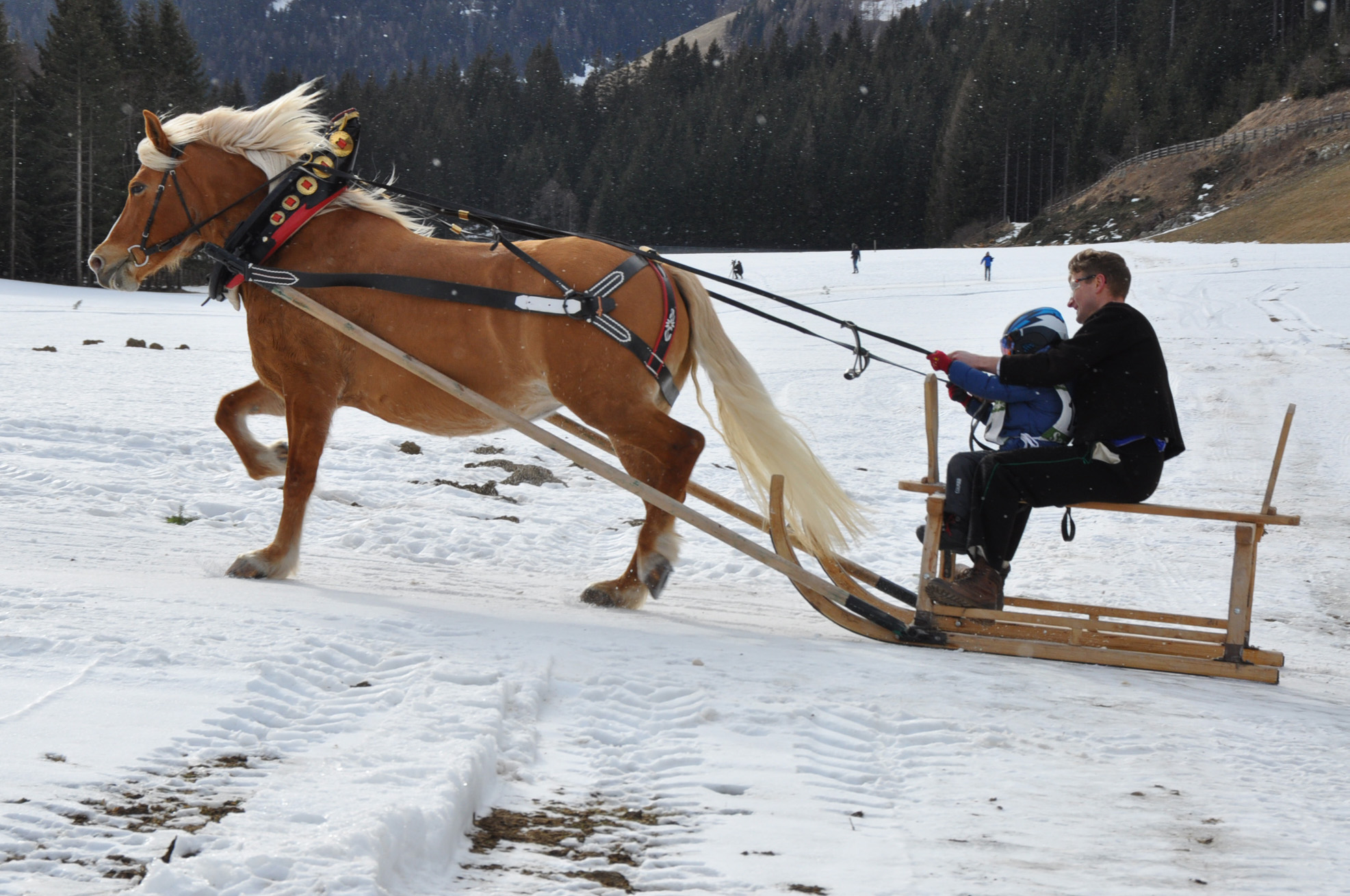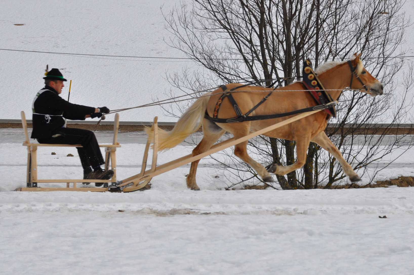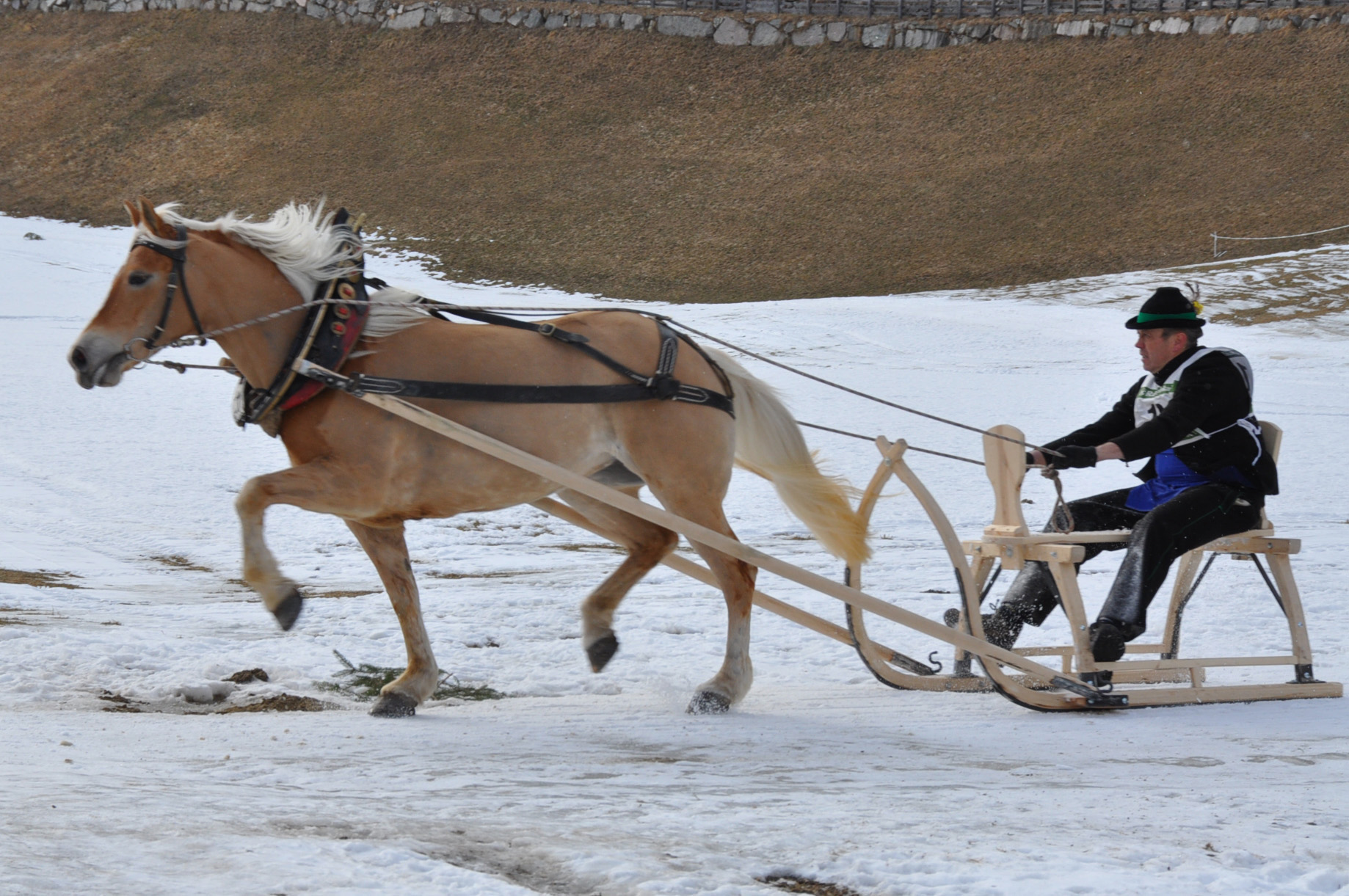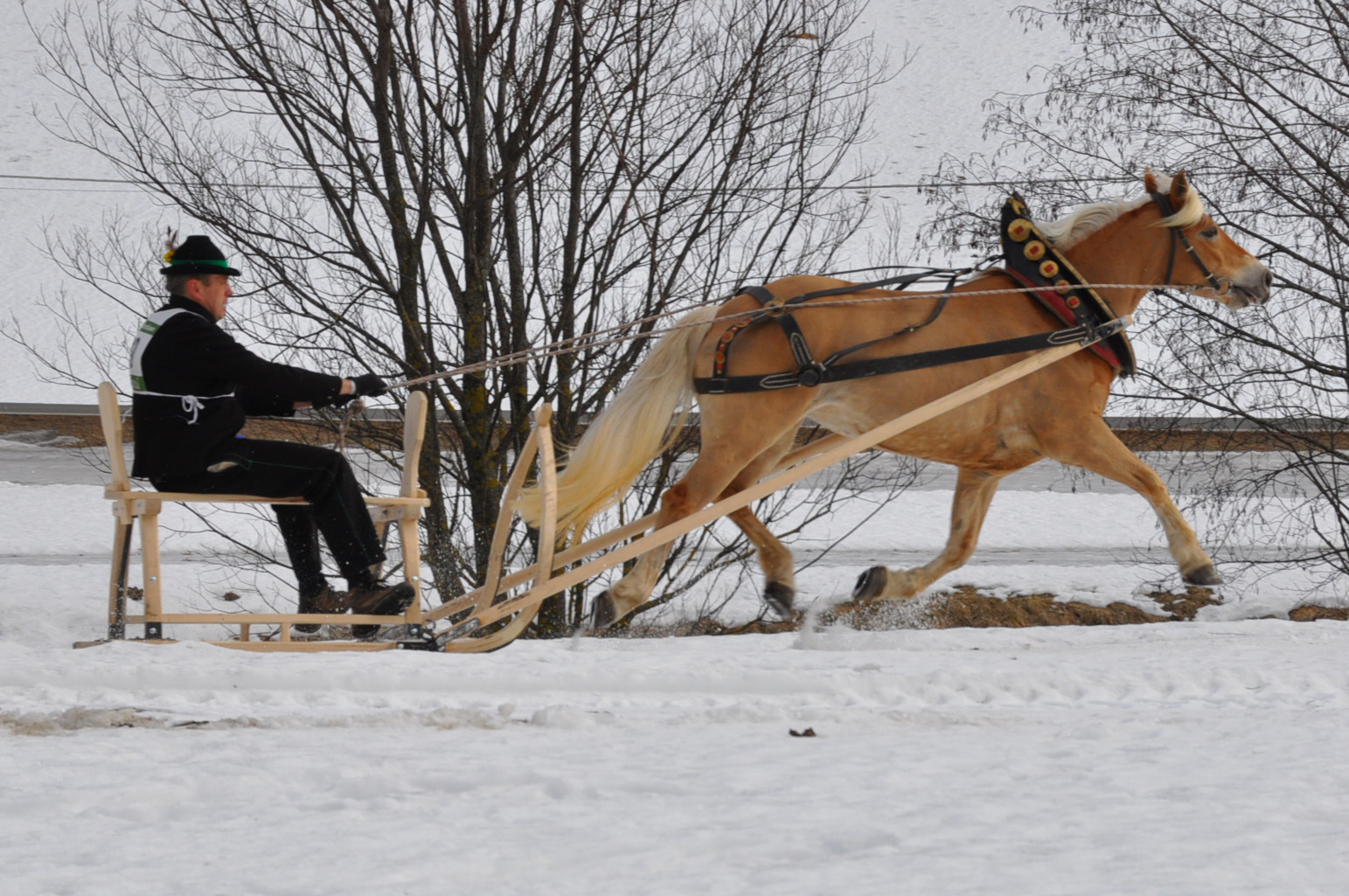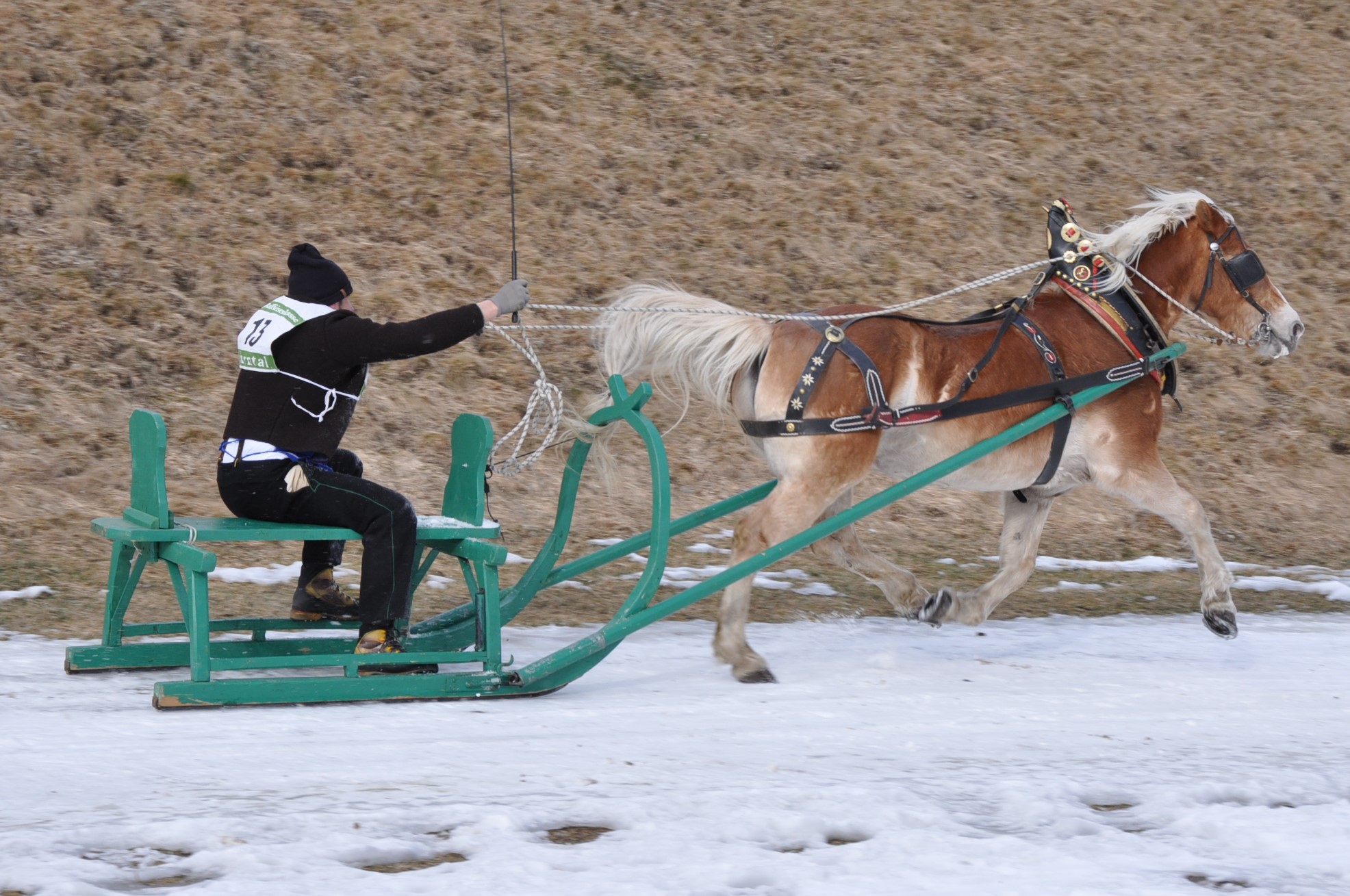 It’s that time of the year – time for the Val Sarentino/Sarntal Haflinger Breeders’ Association’s annual sleigh race and skijoring contest at the Rabensteiner inn and farmstead in Mules/Muls. And on Saturday 22 January 2022, crowds from near and far braved fierce gusts of icy wind and excitedly cheered on the Haflingers racing in a number of categories with their golden winter coats glistening in the sun.