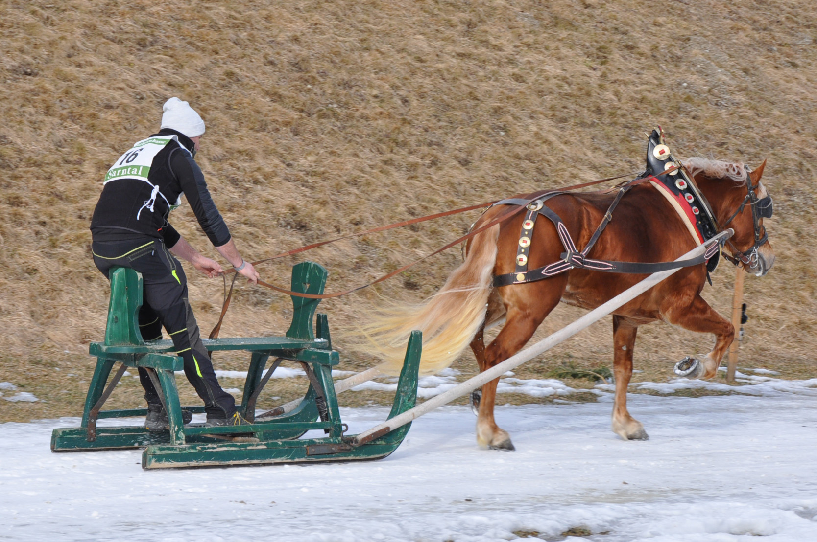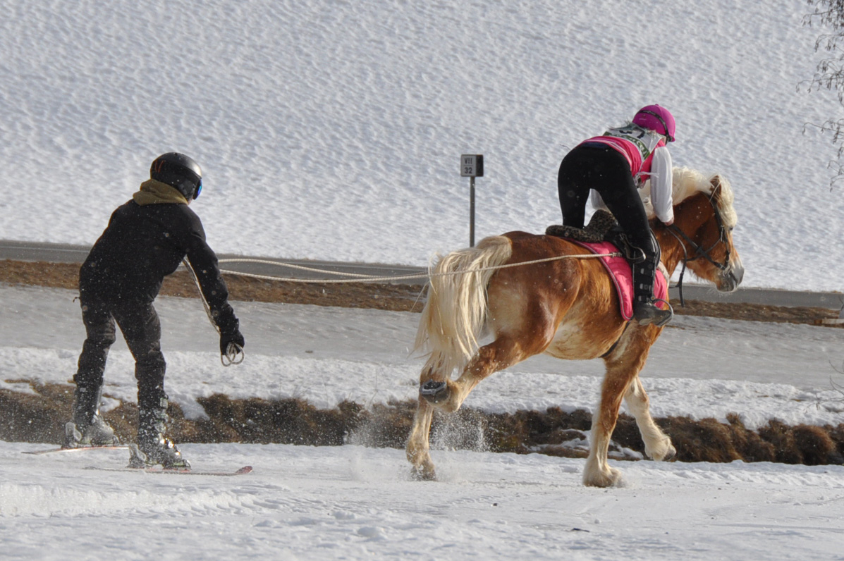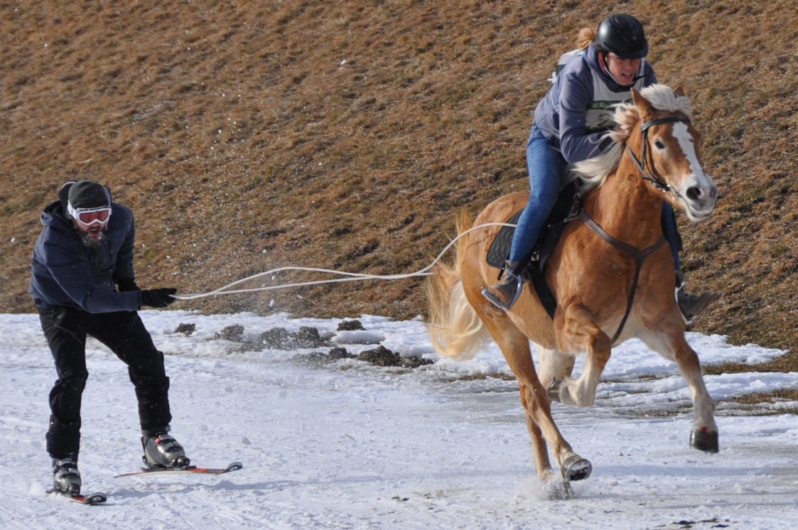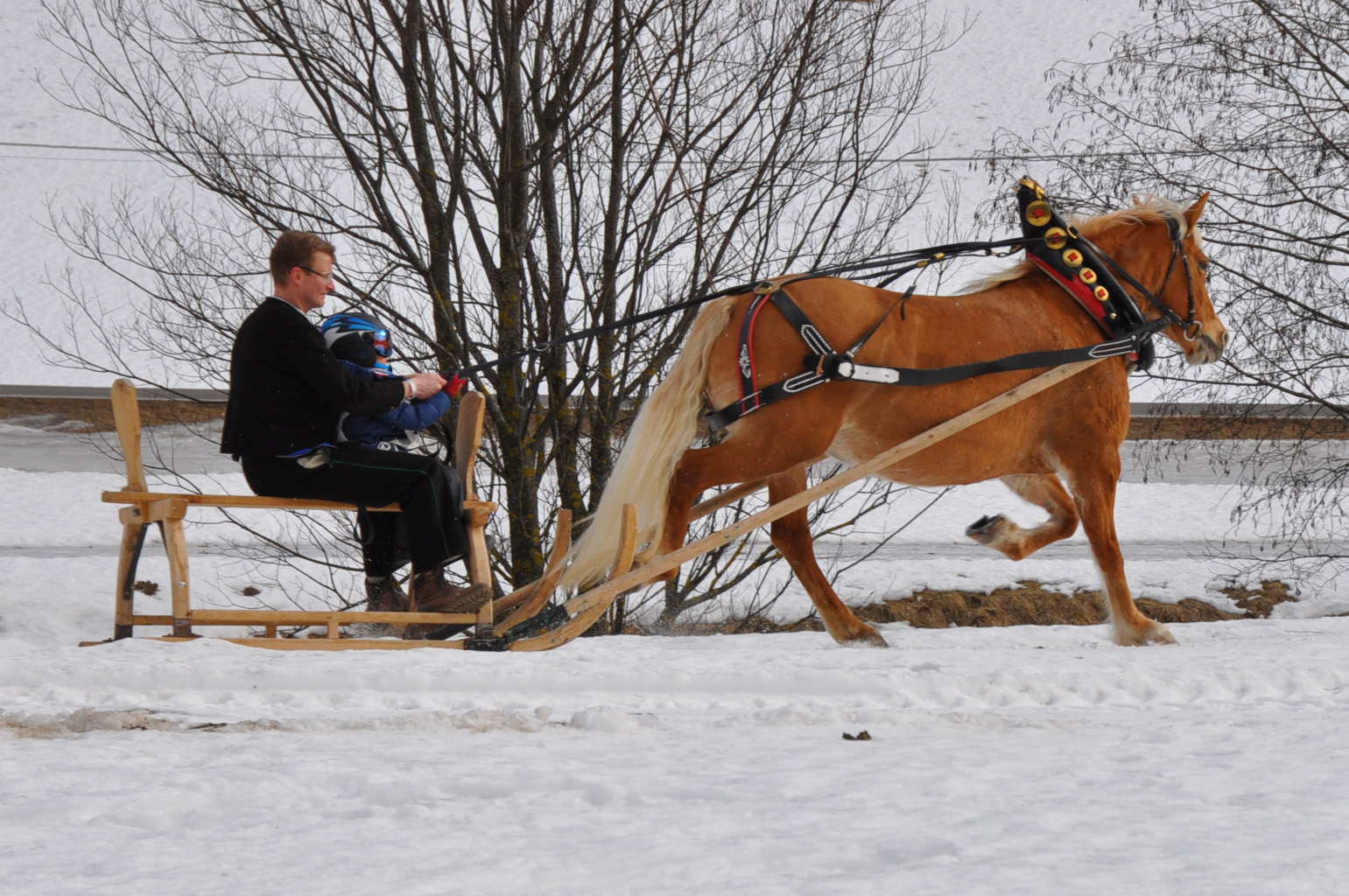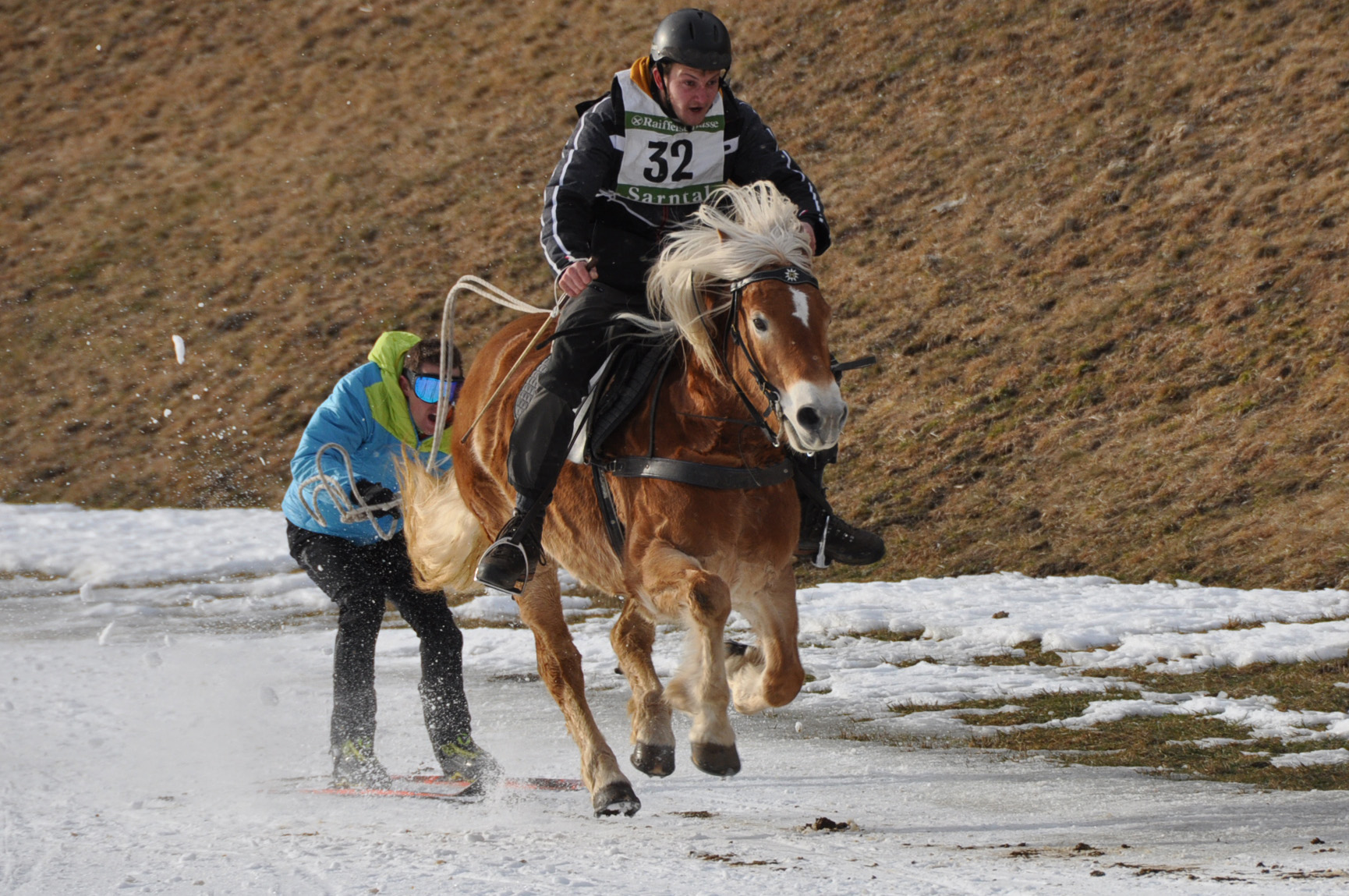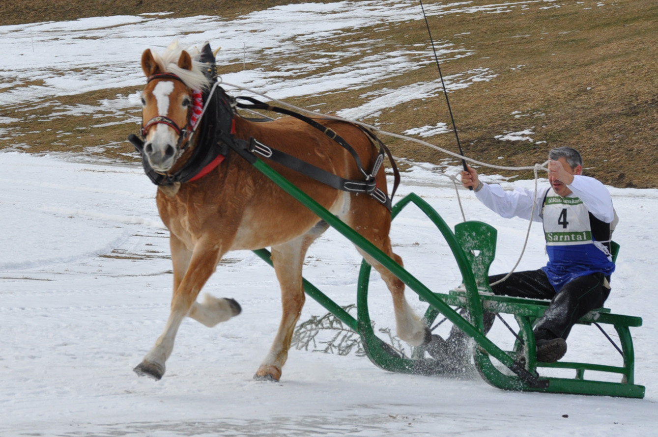 It’s that time of the year – time for the Val Sarentino/Sarntal Haflinger Breeders’ Association’s annual sleigh race and skijoring contest at the Rabensteiner inn and farmstead in Mules/Muls. And on Saturday 22 January 2022, crowds from near and far braved fierce gusts of icy wind and excitedly cheered on the Haflingers racing in a number of categories with their golden winter coats glistening in the sun.