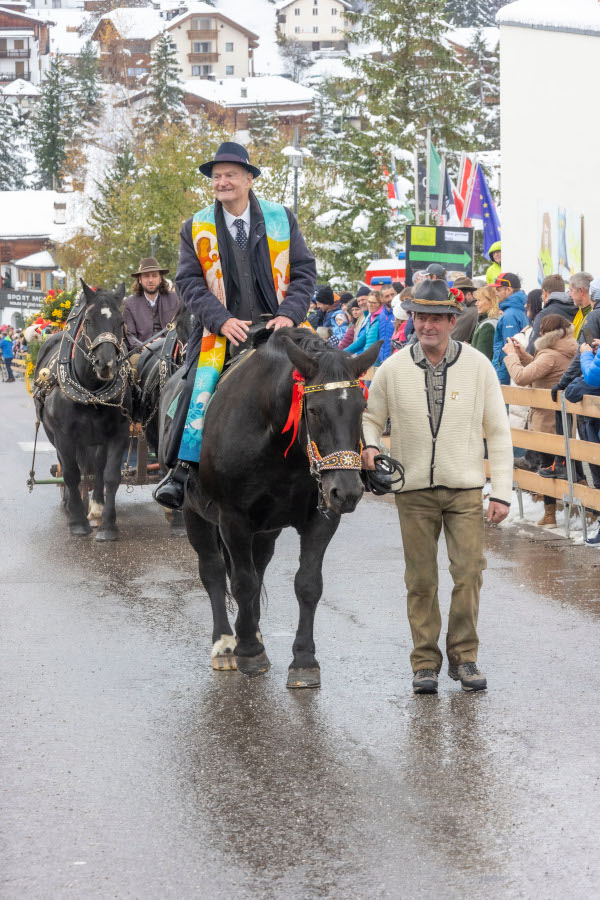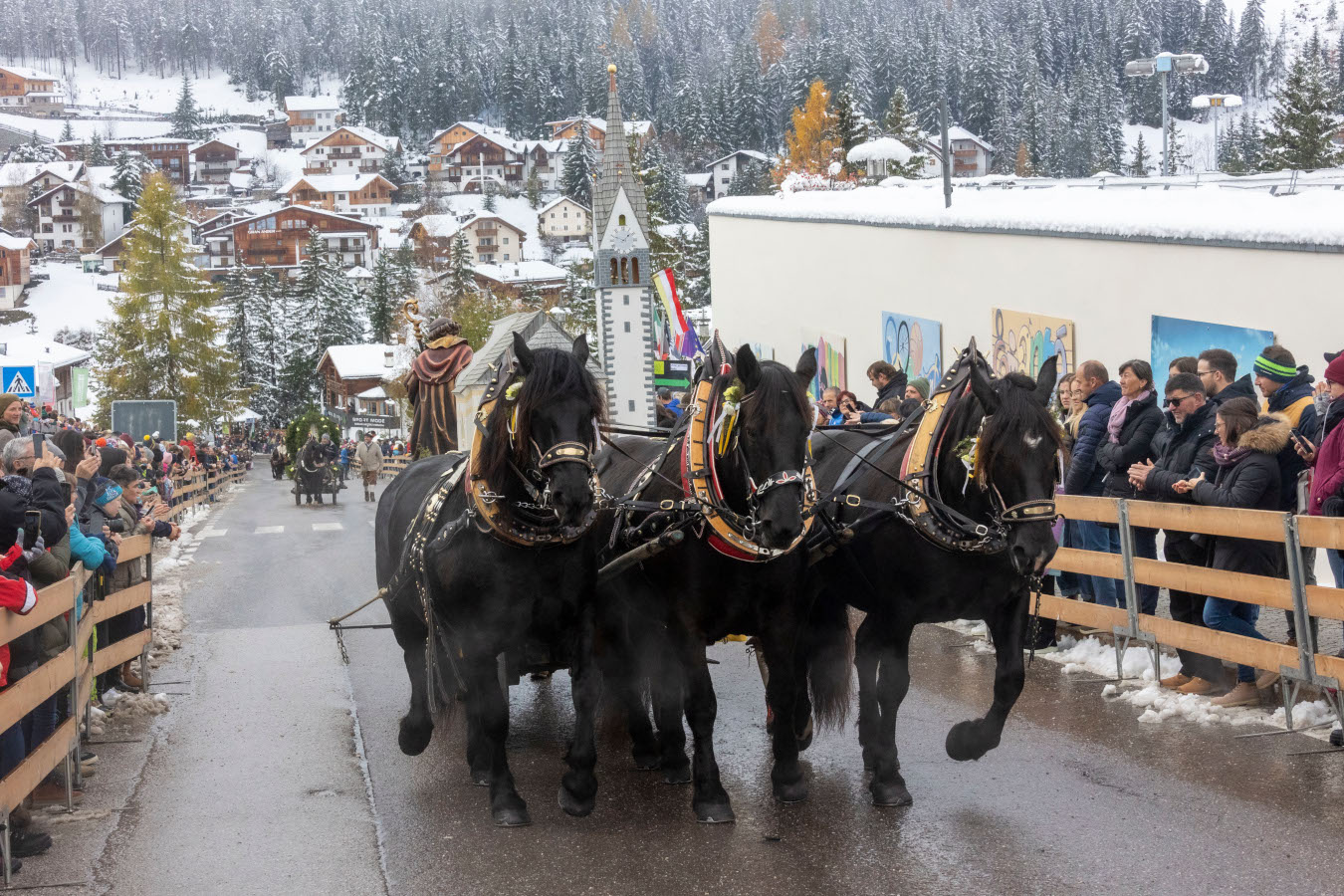 Alla Cavalcata di San Leonardo di ieri erano presenti oltre 100 cavalli e svariati allevatori provenienti da tutto l'Alto Adige, in particolare dalle valli ladine. Carrozze riccamente decorate, cavalieri e amazzoni nei costumi tradizionali, insieme alle bande musicali hanno offerto uno spettacolo meraviglioso, con le Dolomiti innevate a fare da cornice.