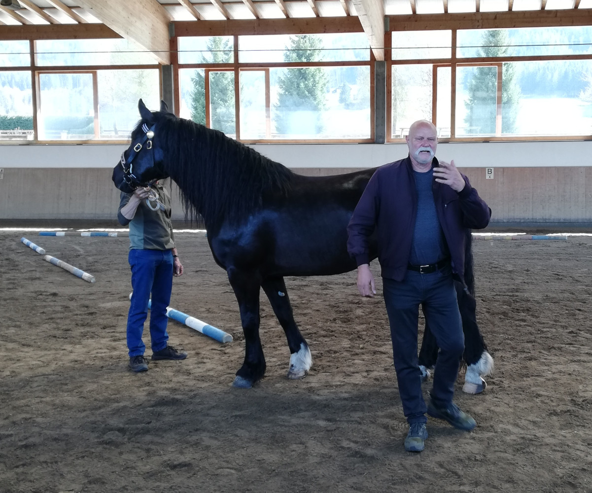 Am 12.04.24 fand im Tolderhof in Olang ein Weiterbildungskurs der Norikerzüchter „Präsentieren und Beurteilen von Zuchtpferden“ mit Ing. Walter Werni aus der Steiermark statt. Die Fortbildung war bis auf den letzten Platz besetzt, es nahmen Züchter verschiedenster Altersklassen und Herkunftsgebieten Südtirols teil, als Ehrengast durfte Wilhelm Popatnig, Herausgeber der Pferdefachzeitschrift „Rossinger“ begrüßt werden. Der Kurs begann mit einem theoretischen Teil am Vormittag. Walter Werni referierte über das Pferd, speziell dem Noriker, über seine Eigenheiten im Aufbau und erläuterte Begriffe der Pferdebeschreibung bzw. -beurteilung. Nach dem gemeinsamen Mittagessen ging er am Nachmittag zum praktischen Teil am Pferd in der Reithalle über. Den Züchtern wurde der genaue Ablauf beim Vorführen am Dreieck beschrieben und sie erhielten von Walter Werni wertvolle Ratschläge und Tipps in Problemsituationen. Der zweite Teil des Nachmittages wurde ganz der Pferdebeurteilung gewidmet, die drei anwesenden Noriker verschiedenster Altersklassen wurde besprochen und gemeinsam und in Gruppen bewertet. Alles in allem eine gelungene Weiterbildung mit Fortsetzungscharakter.